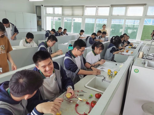 高一段的“水果电池大比拼”实验活动,通过前期的查阅资料、实验方案书写等环节评选出了十四个优秀方案,并在实验室实践。同学们收获颇丰,正如高一(6)班谷星楼同学自信满满地说,“利用水果来发电,涉及到物理和化学的知识,在这个实验过程中,可以用很多方式把‘发电’这个形式表现出来。利用到原电池的知识。在水果的选择上,水分多、酸度高的是首选。”通过三人一组的配合,充分考验了他们的团队合作能力,同学们收获颇丰。