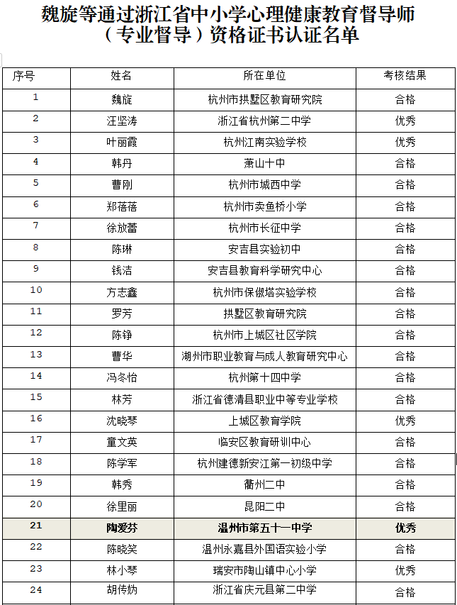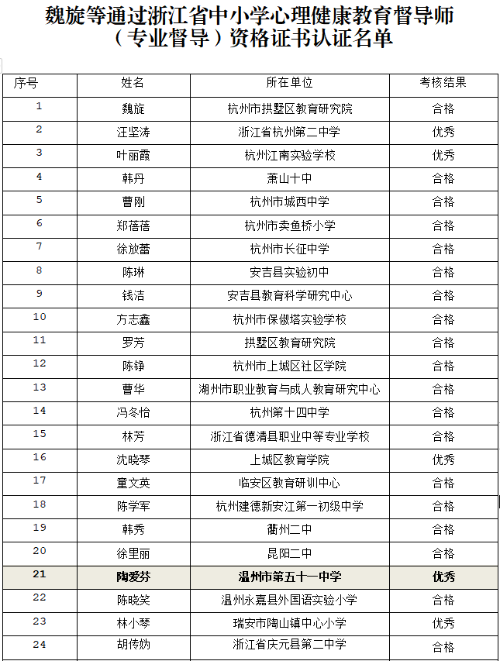 3.通过浙江省中小学心理健康教育督导师(专业督导)资格认证