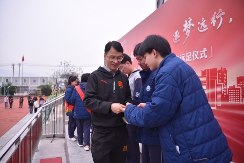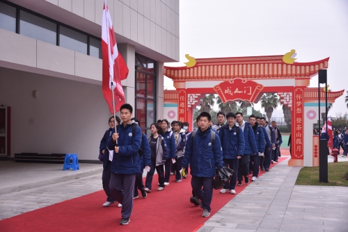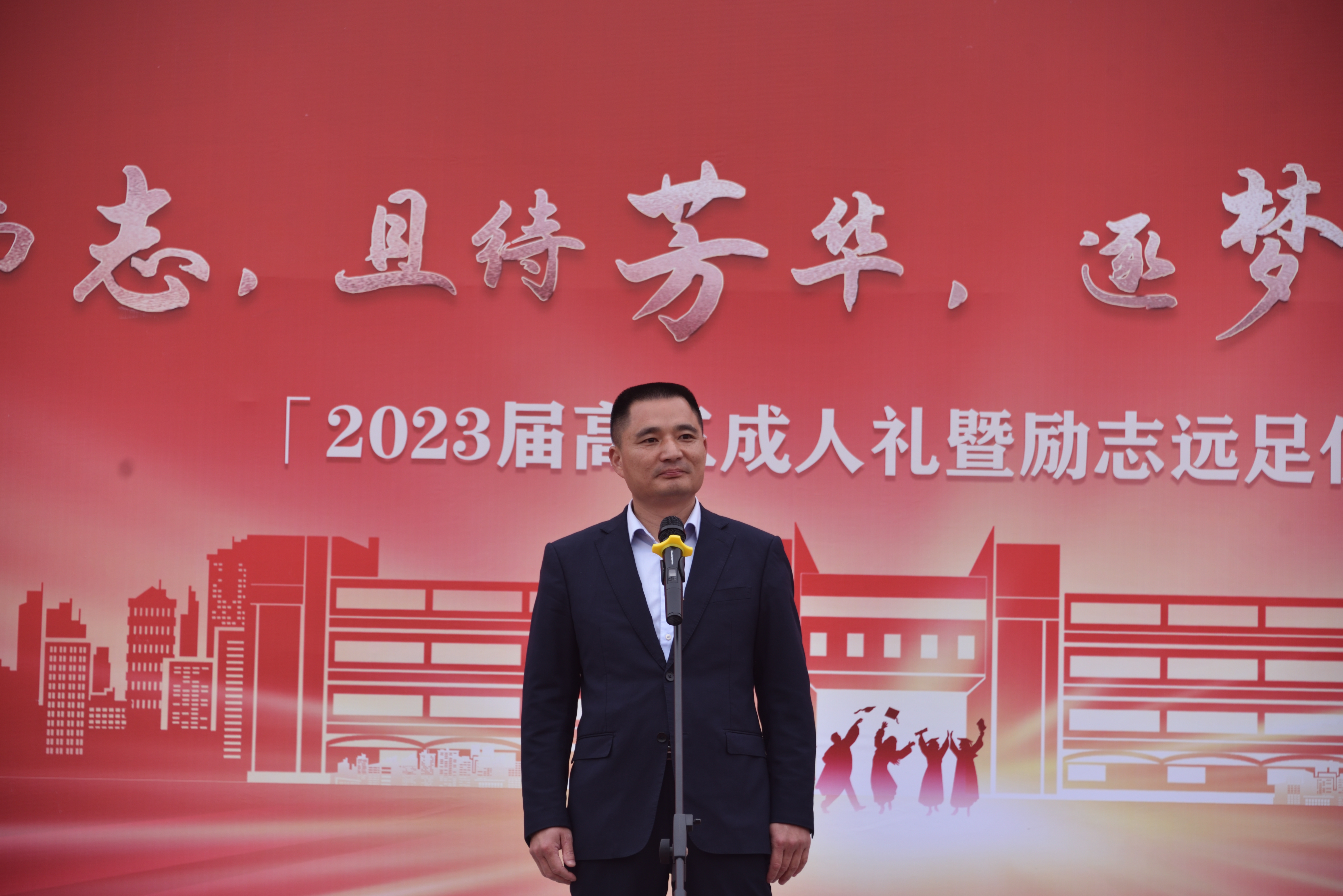 陈平校长为本次励志远足活动授予校旗,并郑重宣布高三学生励志远足正式开始。高三学子举着班旗走过成人门,雄赳赳气昂昂,用自信的脚步,沿着梦想的方向,丈量远方。
