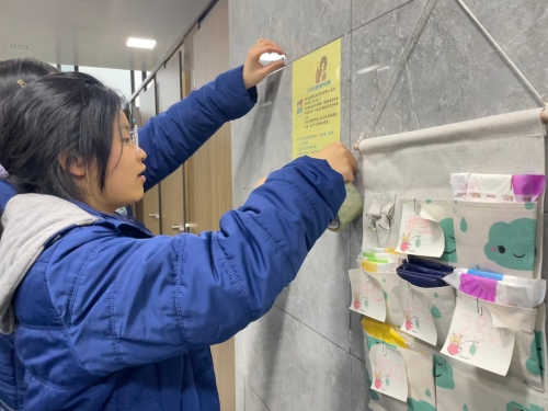 高三(6)班的四名女生在成人礼结束后,在教学楼每层的卫生间门口布置了一个互助站。她们用这种“以小见大”的坚持去切实际的帮助身边的同学,而这也是每一位高三的女生,真正直面的成人仪式。一个小小的互助站,几片应急用的卫生巾,不再只是女孩子之间的秘密,它可以被展现在阳光下,被谈论在人群中。