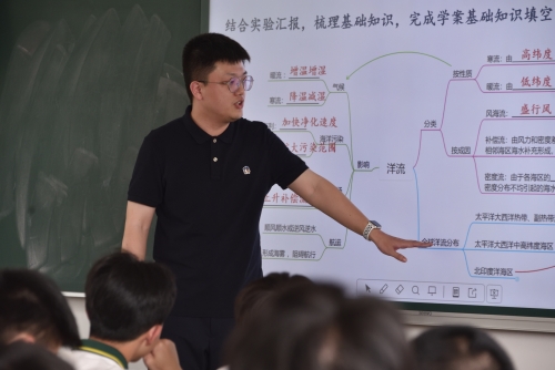 谢老师在高二英奇(12)班上了一节展示课《海水的运动复习课》。