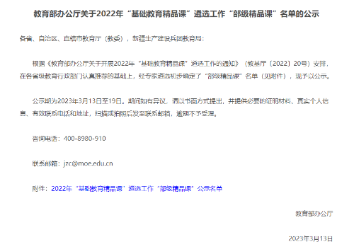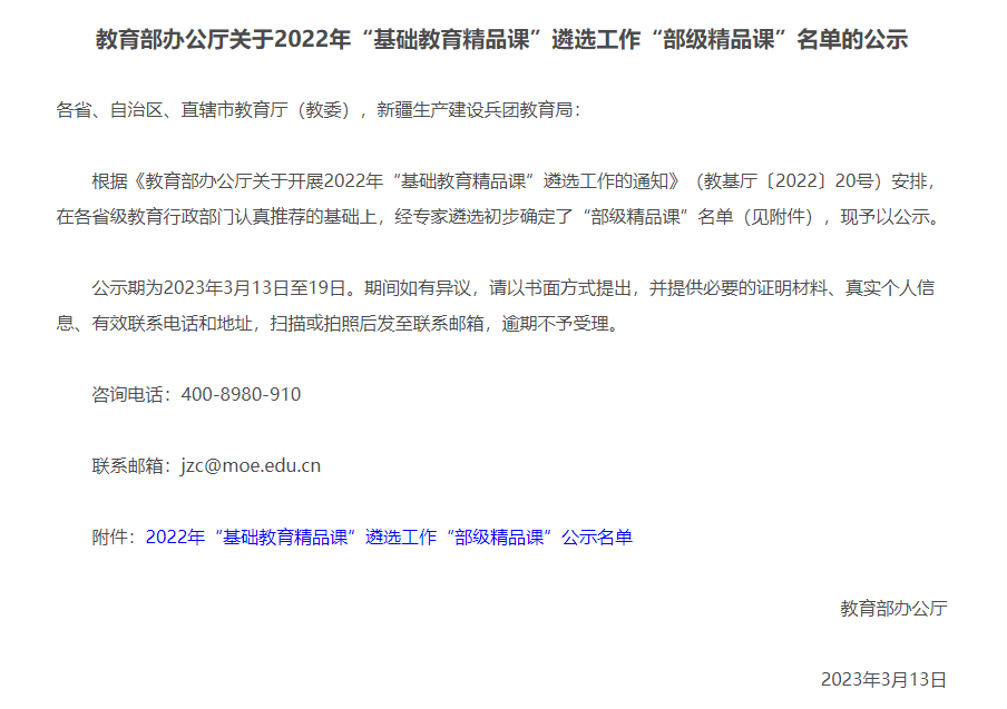 二、2022年“基础教育精品课”遴选工作“部级精品课”