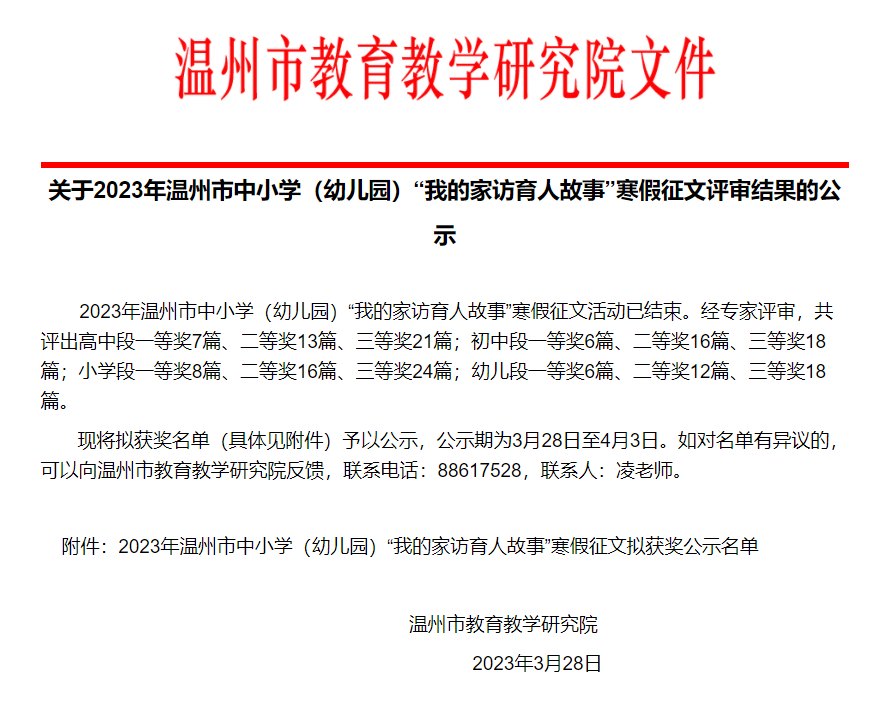 三、2023年温州市中小学(幼儿园)“我的家访育人故事”寒假征文活动