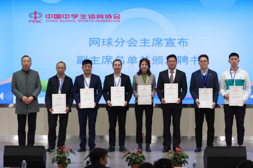 教育部学生体协联合秘书处副秘书长、国际中学生体育联合会副主席、中体协常务理事张爱龙在换届会上宣读《中国中学生体育协会网球分会换届决定》,为全国共七所主席单位授牌并颁发网球分会主席、秘书长聘书。