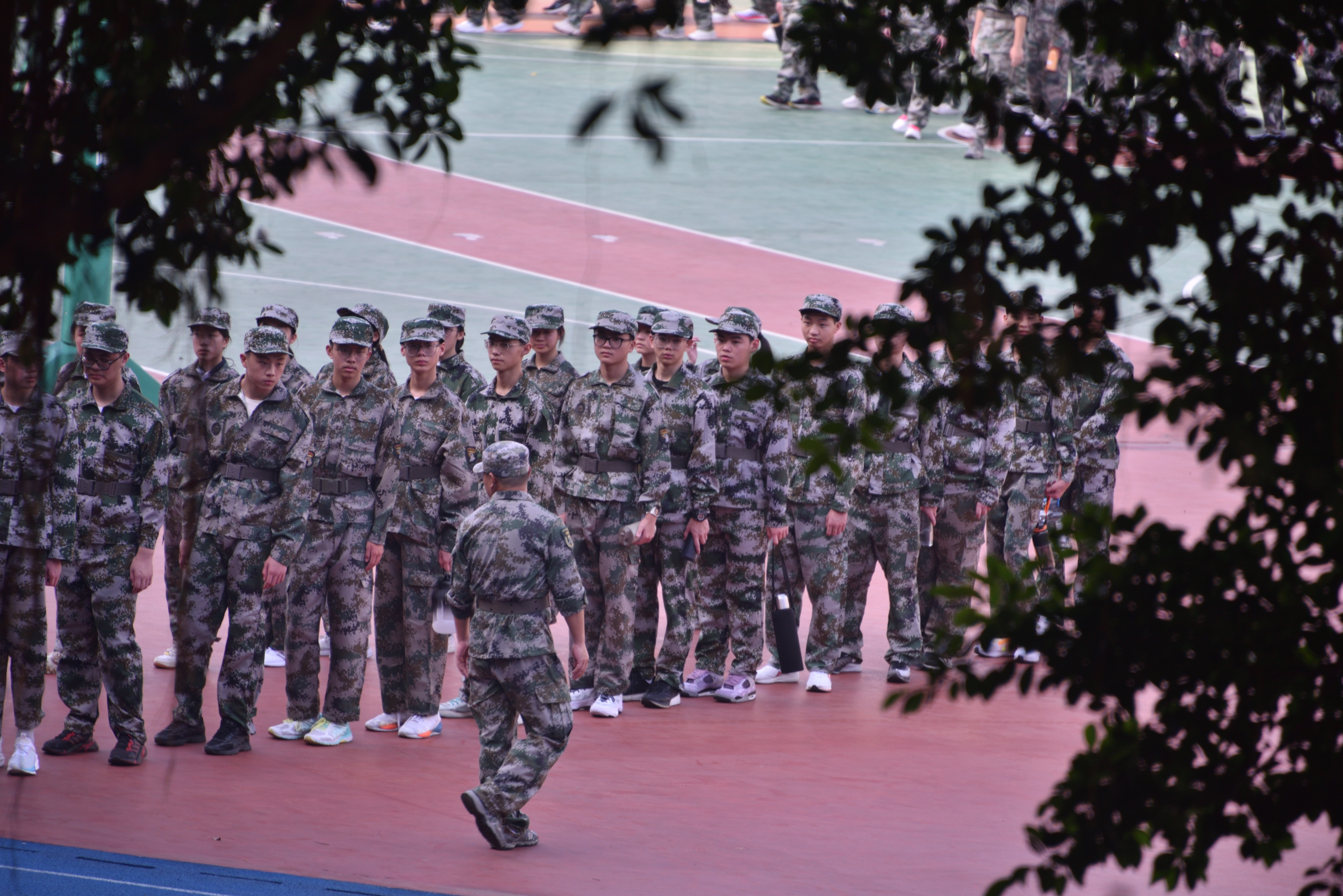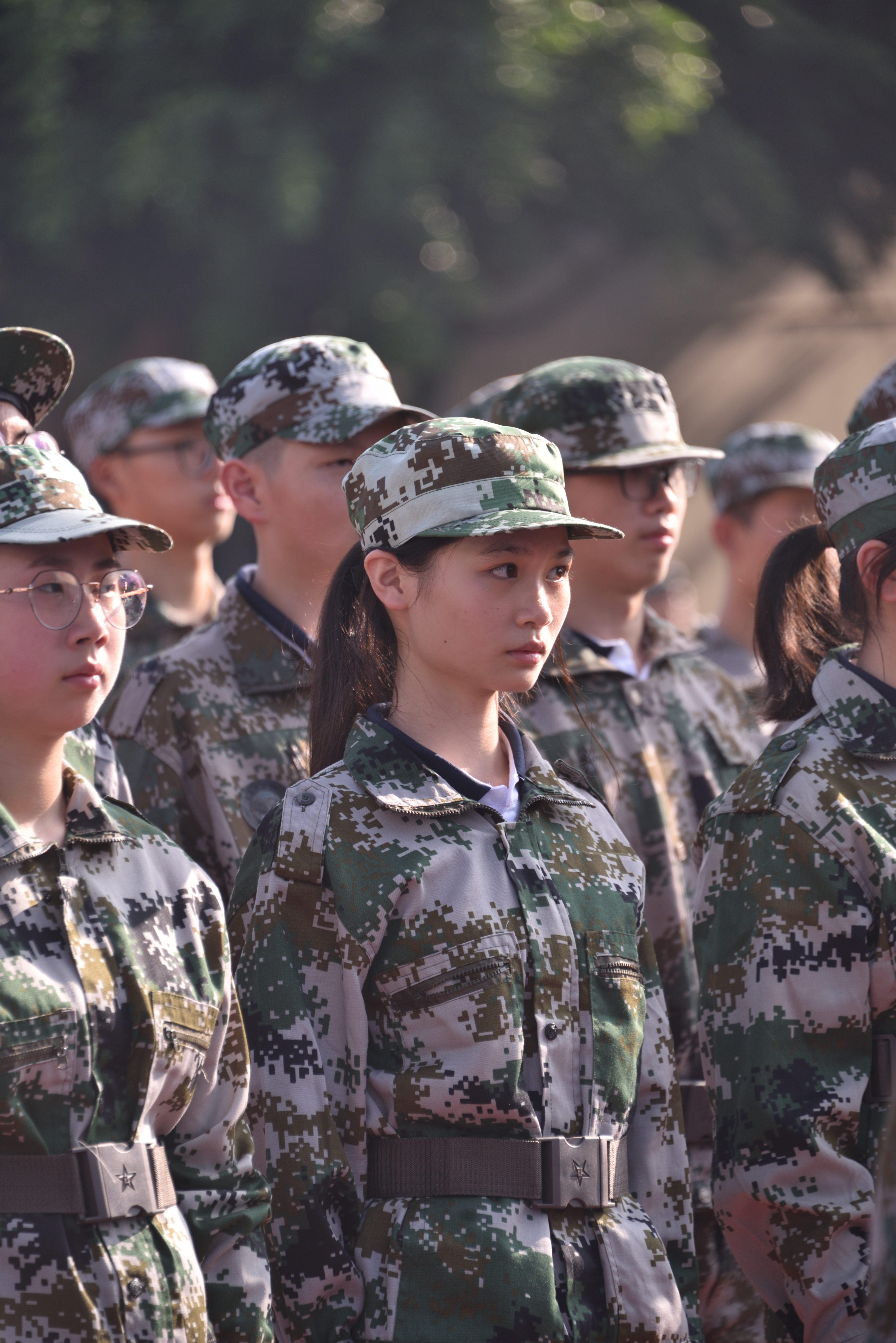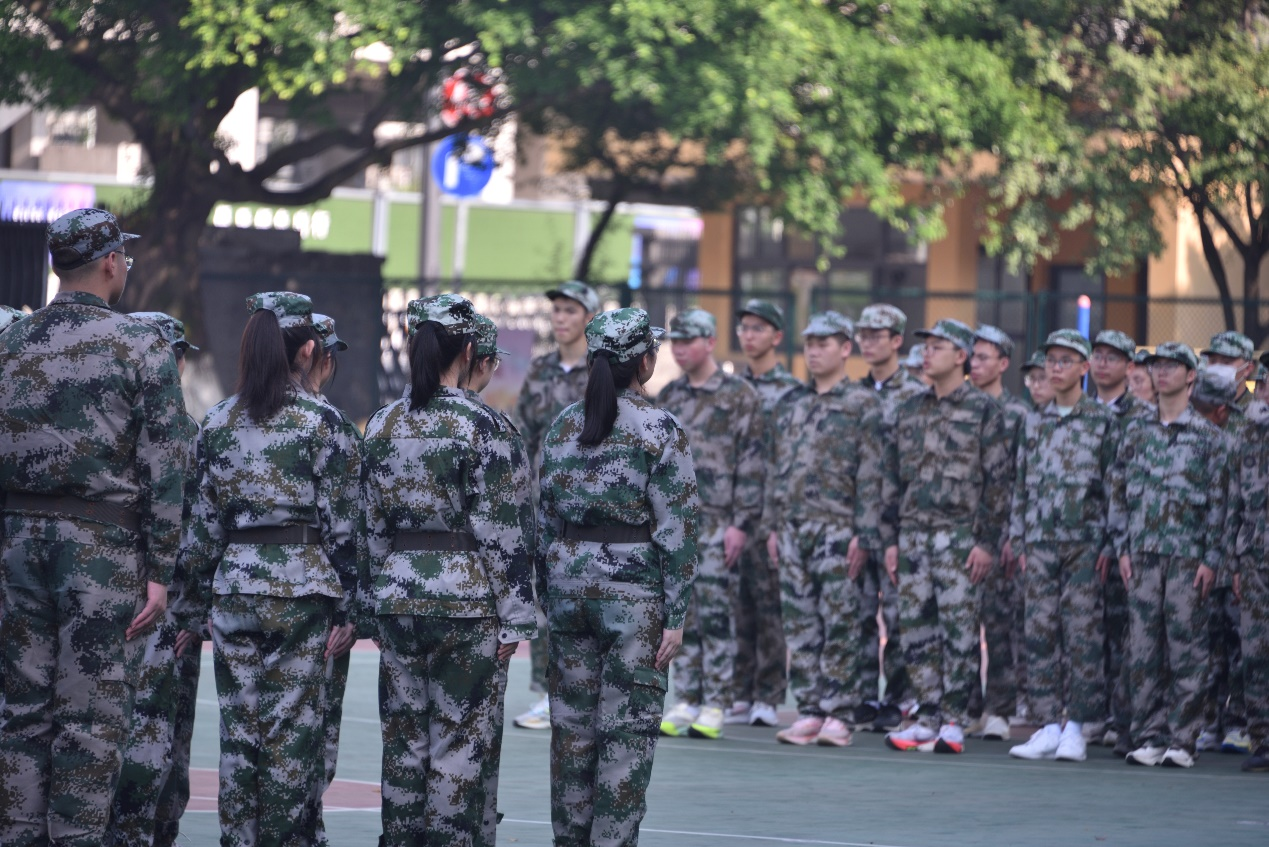 2023级高一新生身着统一的迷彩军服,喊着齐整的口号,伴随着教官的铿锵有力的“立正”,迈入了高中生活的第一课——军训。