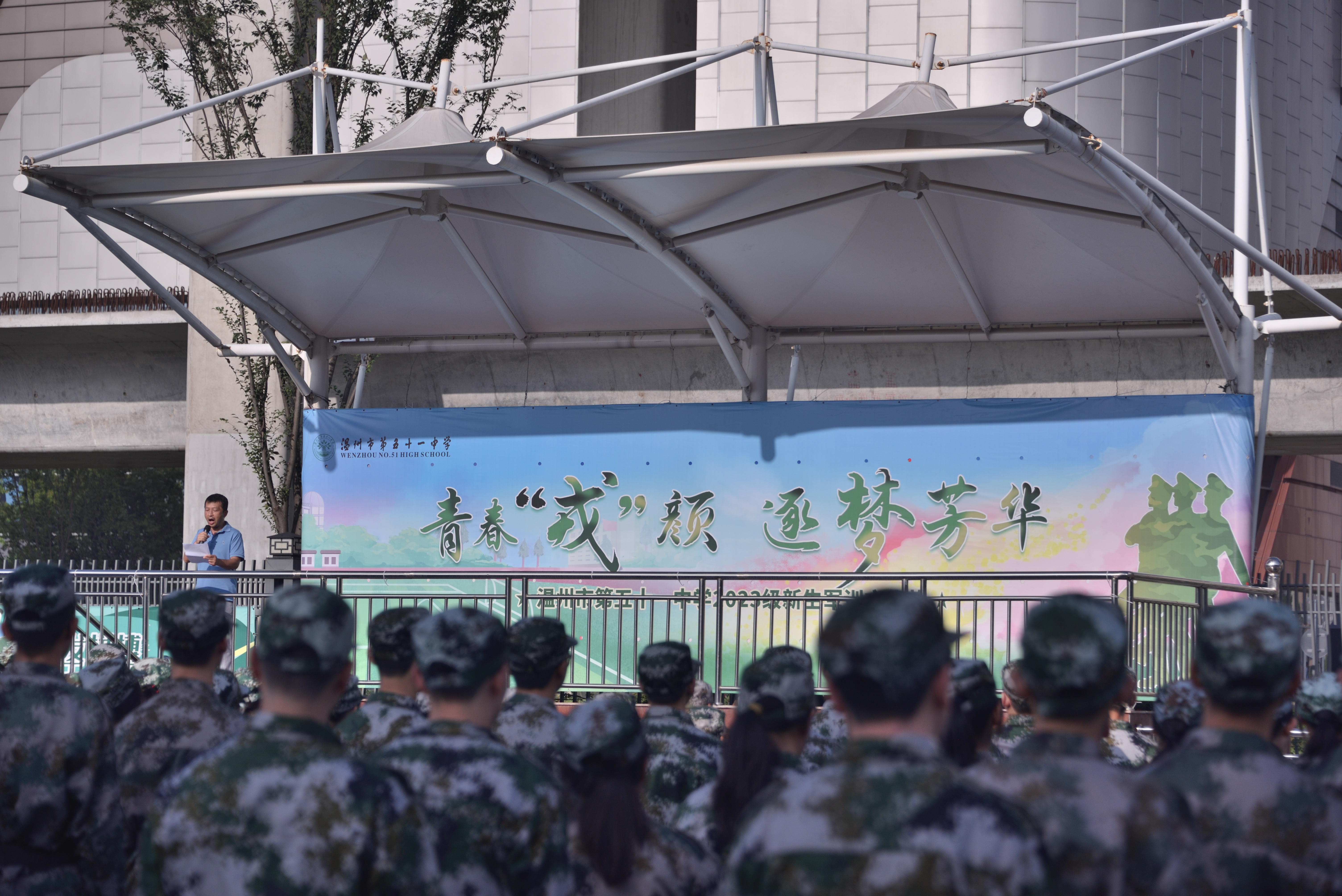 我们相遇在八月底的盛夏,骄阳照耀,夏风吹拂,温州市第五十一中学2023级高一新生军训文化节正式拉开序幕!