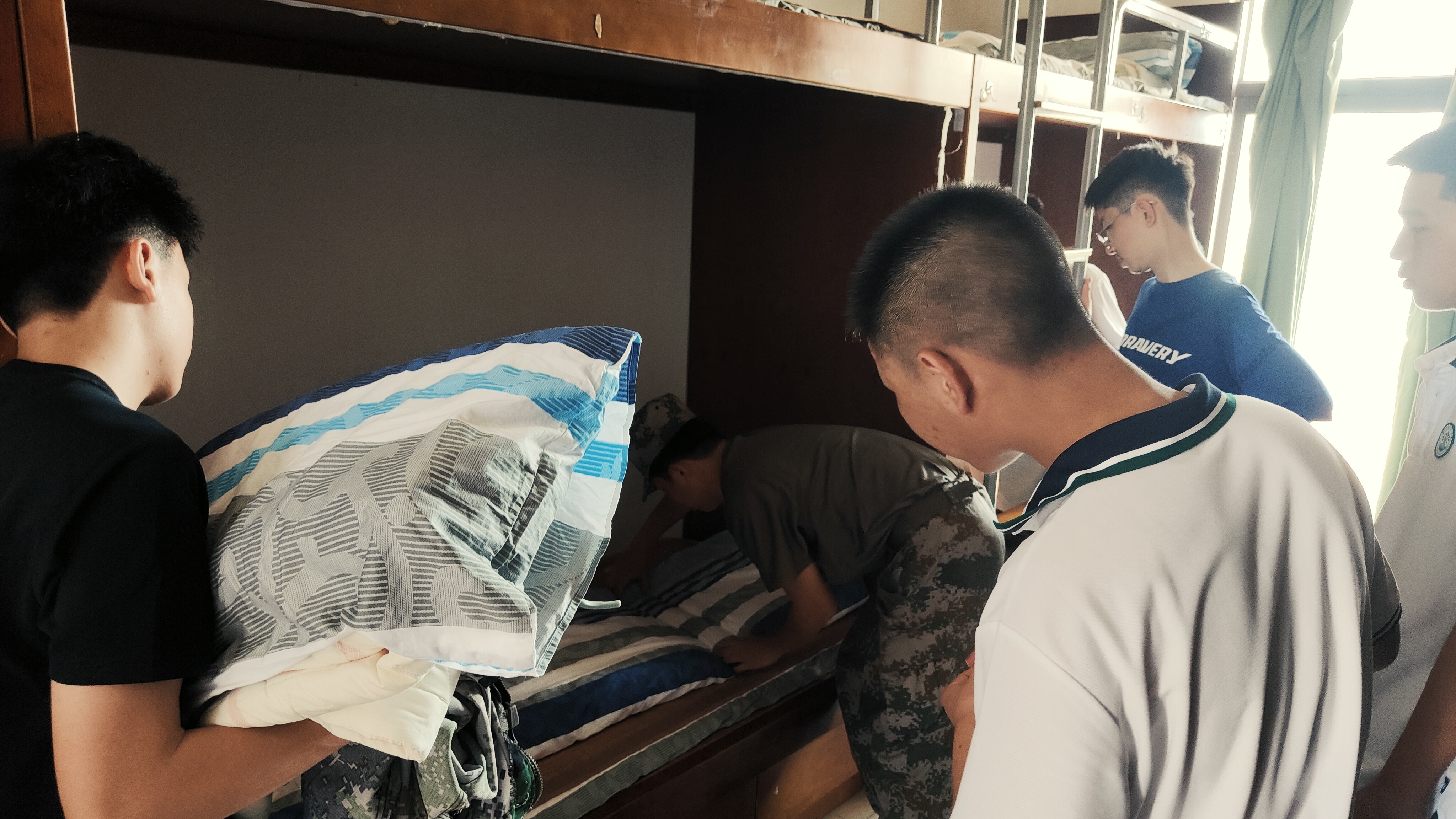 内务整理的训练,不仅能增强同学们的自理能力,同时能培养起自觉、自主、自律的意识,为今后的高中新生活打下良好基础。