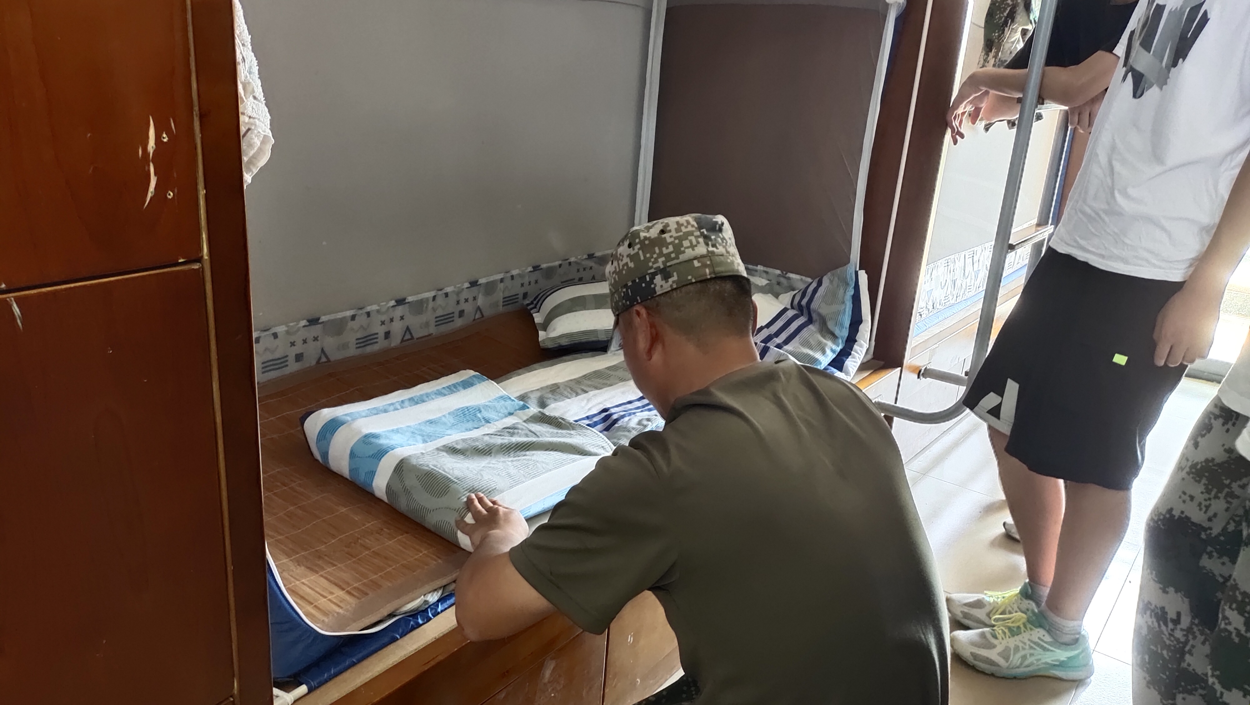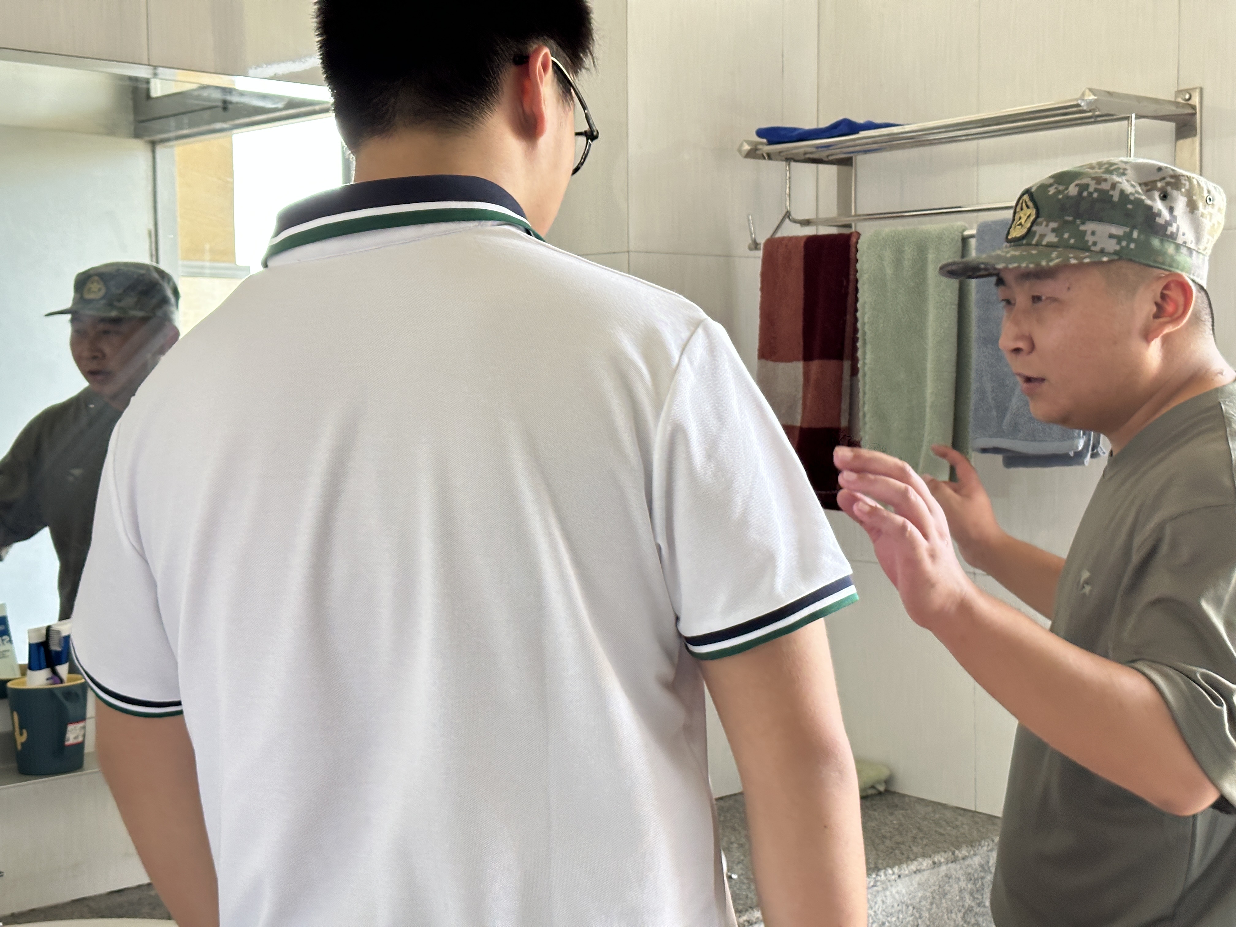 “出门看队伍,进门看内务”,内务整理是军训中的必备项目,良好的军训内务也是认真态度与军人作风的体现。从宿舍清洁卫生、物品摆放到整理床铺、被褥叠放,教官们严格按照军人标准进行要求。同学们在听完教官讲解后也在教官的指导下开始个人内务的整理。