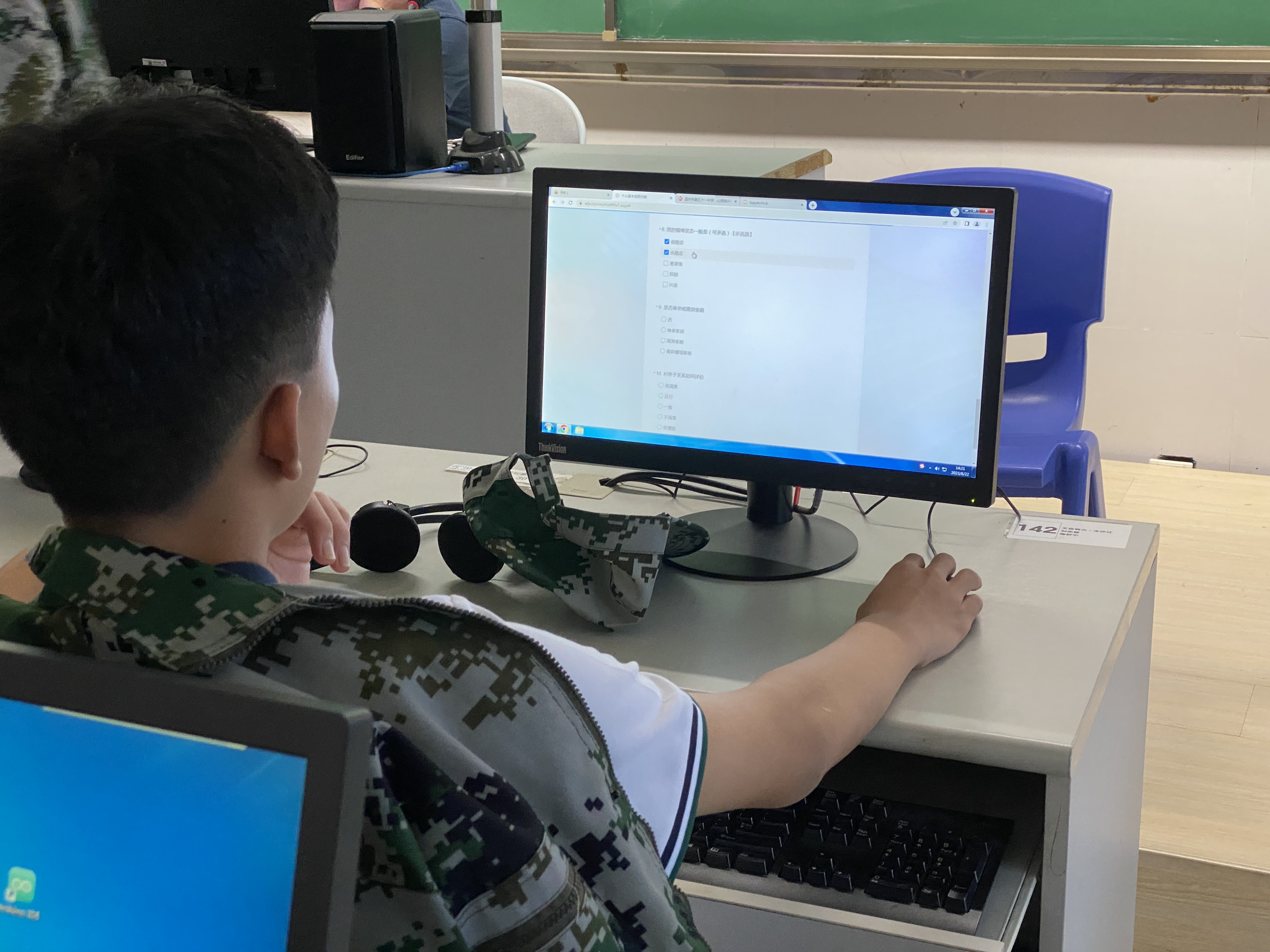 军训第一天,学校组织安排高一新生进行心理健康普查。心理普查能够更好地帮助学校了解同学们的心理健康状况,便于更有效地加强学生心理危机预防和干预,促进学生更健康地成长。